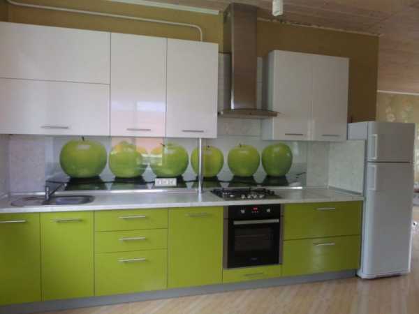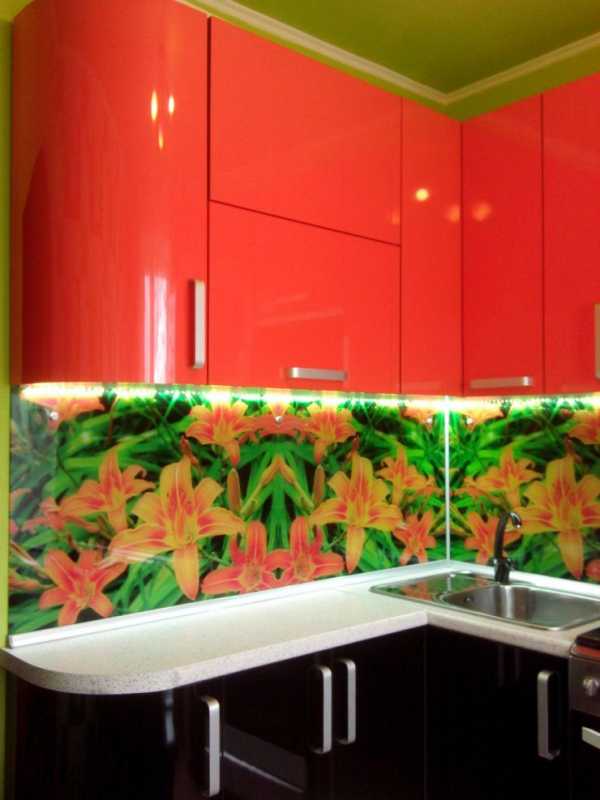 Но существует еще один вариант — панели с фотопечатью. Подберите рисунок на кухонную тему или украсьте кухню красивым пейзажем, контрастирующим по гамме с основным цветом — все в ваших руках.