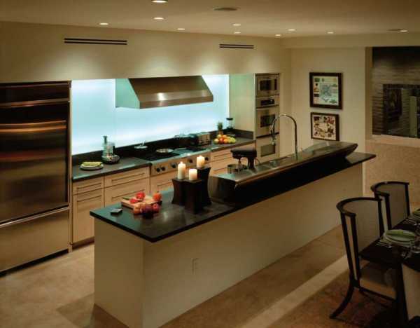 Большие помещения представляют больше фантазии, но и они ограничены. К тому же, достаточного размера кухни есть далеко не у всех.