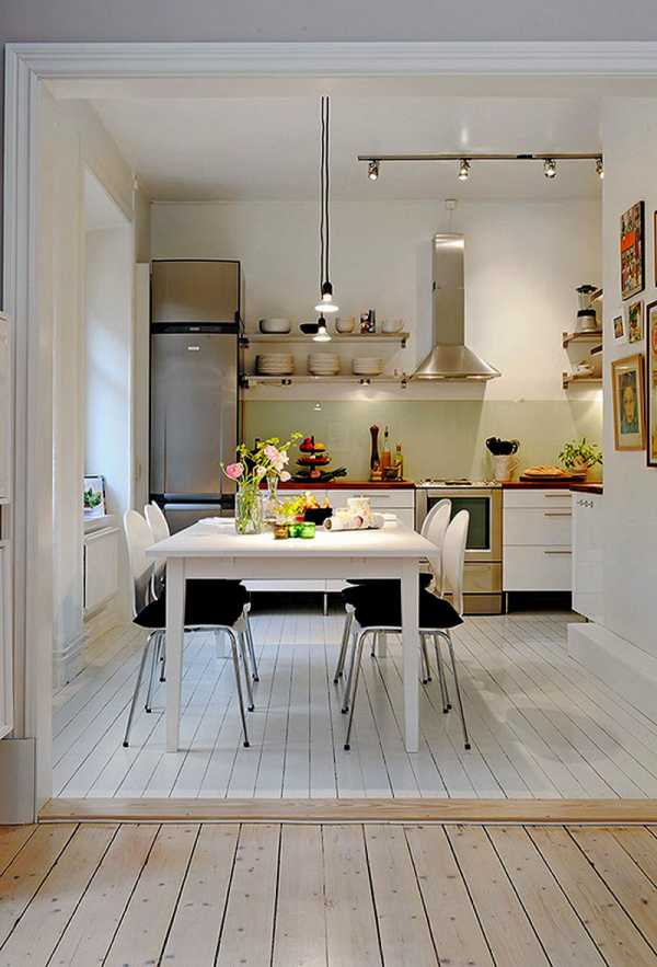 Метод не просто эффектно выглядит: он позволяет добавить маленькой кухне пространства, создавая полномасштабную обеденную зону.