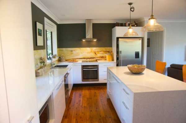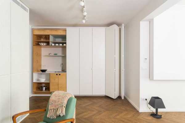 Единственный минус: сложность встраивания бытовых приборов. Возможно, классическую плиту с духовкой вам придется заменить на варочную панель. Но если вы не фанат выпечки, такая оптимизация пространства придется вам по душе.