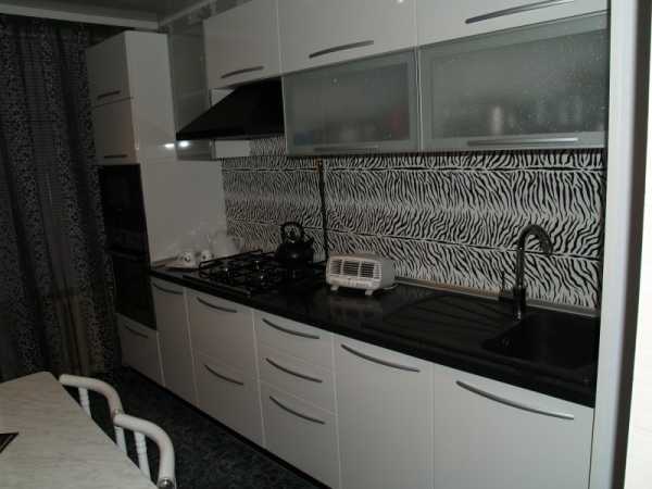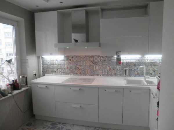 Прямая классическая белая кухня с фасадами из пленочного МДФ за 600 долларов. Площадь всей кухни – 8 кв.м.