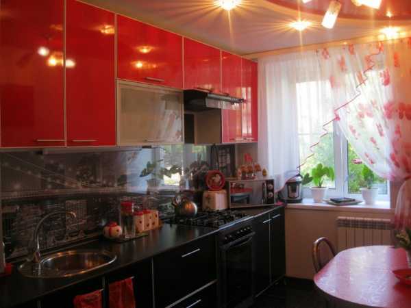 Угловая красная кухня с фасадами из пластика. Стоимость – 2700 долларов.