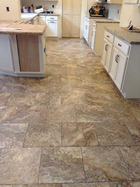- Кварцвинил подходит для укладки не только на кухне, но и в других помещениях. Примечательно еще и то, что монтаж такого покрытия может производиться без использования порожков.