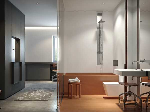 Интерьер ванной комнаты следует принципам разработанного дизайна