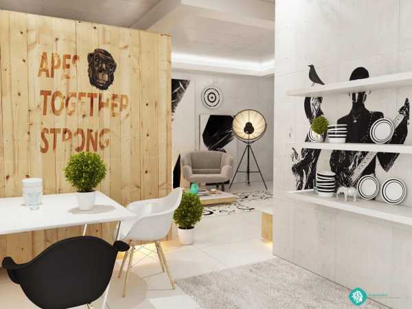 Вряд ли у вас получится переоценить преимущества этой студии в стиле минимализм: тут и контрастные цвета, и классический для скандинавского жилья белый фон, и достаточно оригинальные идеи для декора, и светлый кухонный гарнитур из сосны. Всё это превращает лаконичное жилище в индивидуальную квартиру.