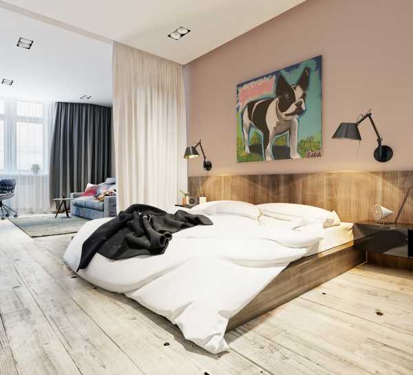 Необходимо выделить спальную зону. Для этого пригодится и обустройство помоста, и установка перегородки, алькова. Это сделает вашу студию особенной и позволит сделать кровать более уютным, приватным местечком.