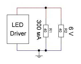 Если подключить параллельно два резистора, ток также будет 300мА, а напряжение упадет в два раза.