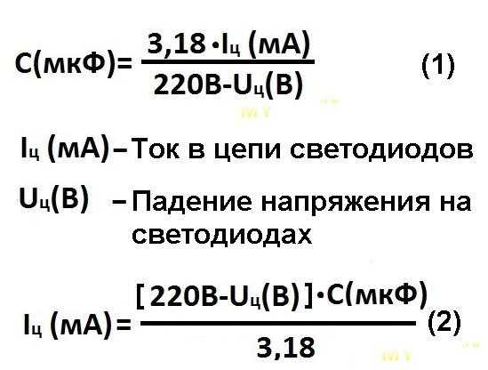 Для тех, кто желает самостоятельно собирать такие драйвера, есть формулы, которые можно найти в сети. И по ним рассчитать номинал конденсатора.