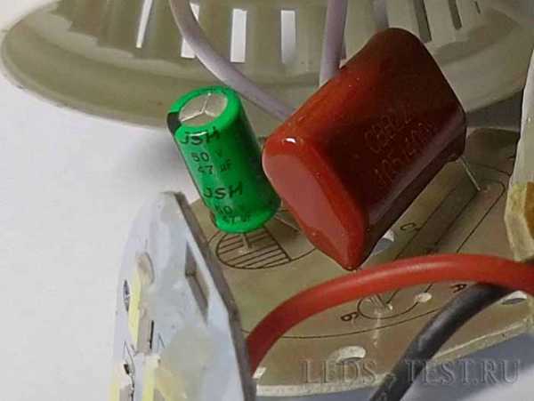 Часто в дешевых лампах мы можем «наблюдать» пульсацию в 100 процентов. В этом случае можно даже не заглядывать внутрь лампы, чтобы утверждать об отсутствии одного из конденсаторов. А именно второго. Т.к. первый необходим для регулировки выходного тока. Его – то уж точно никуда не денут))).
