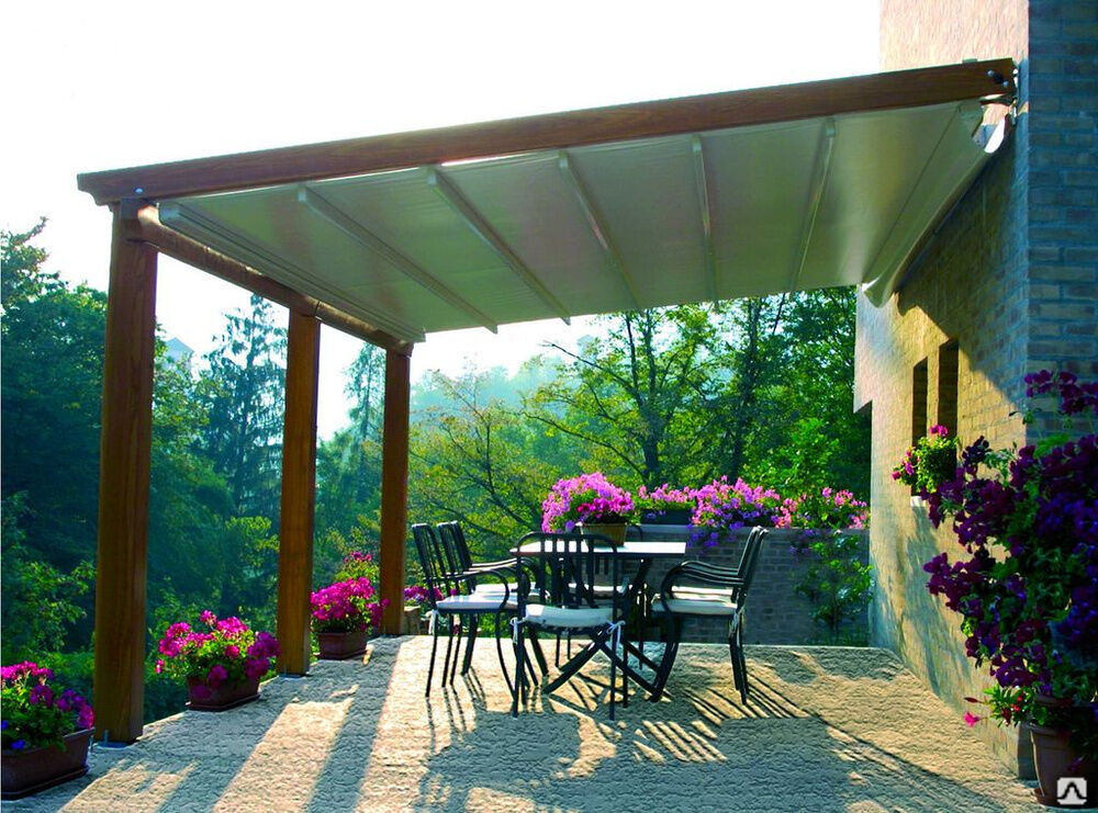 Она позволяет выделить полноценную площадку для отдыха на свежем воздухе, и в то же время укрыться от прямых солнечных лучей и слабого дождя.