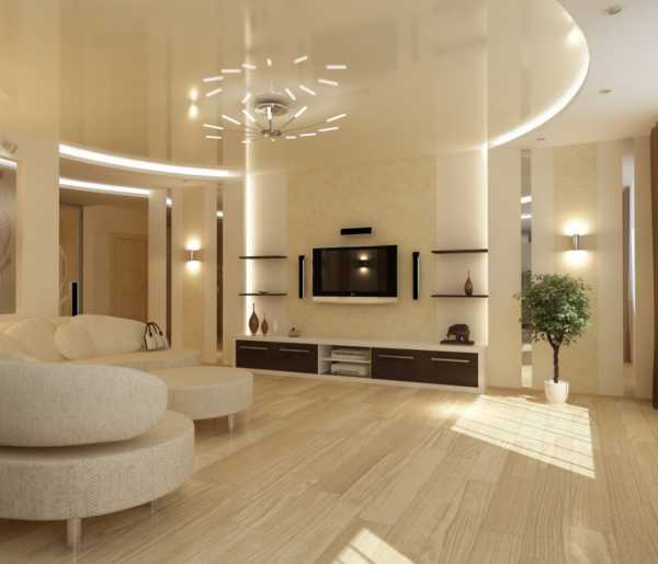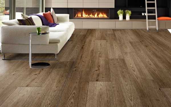Чаще всего для гостиной применяют бытовой тип покрытия с имитацией благородных пород дерева, ламинатной или паркетной доски, которое всегда смотрится очень эффектно. В просторной комнате с небольшим количеством мебели можно использовать глянцевое покрытие с блестящей и сияющей поверхностью.