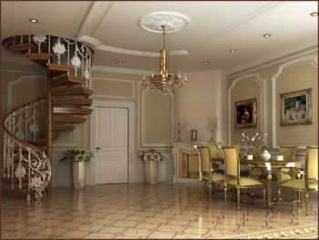 Зал относится к той категории помещений, где проводят время все члены семейства – и дети, и взрослые. Проходимость здесь относительно высокая. Соответственно, напольное покрытие должно быть достаточно износостойким и, по возможности, безопасным, то есть приближенным к натуральному.