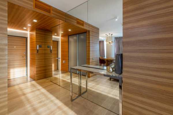 На фото интерьер современной прихожей с полом, оформленным линолеумом под дерево.