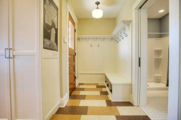 В коридоре или прихожей будет особенно уместна облицовка с пестрым рисунком или в крапинку, что послужит отличной маскировкой загрязнений.
