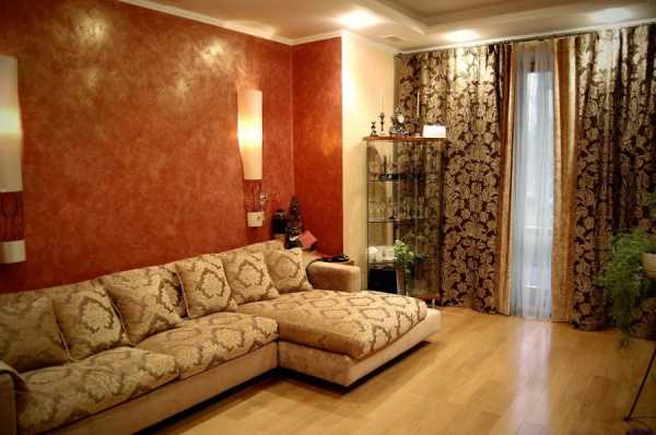Так как, в зале находится тяжелая и массивная мебель, лучше выбрать напольный линолеум высокого класса, имеющий большую толщину и износостойкость.