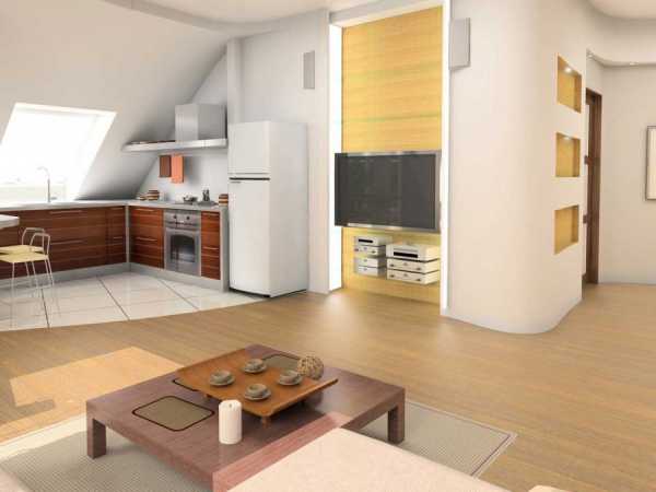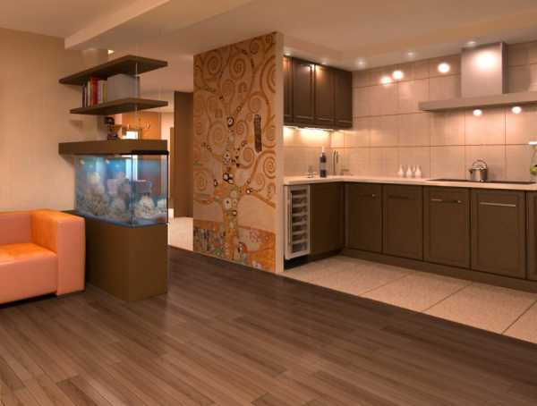 Так как на кухне бывают перепады температуры, частая эксплуатация комнаты и возможен бой посуды, то напольное покрытие должно быть долговечным, износостойким, не хрупким, покрыто защитным слоем. Определенные виды линолеума имеют вспомогательный слой из глянца или матовый. Защитная составляющая характеризуется тем, что не дает проникнуть грязи и упрощает уборку. Поэтому такое покрытие подойдет для квартиры-студии.