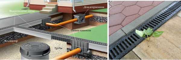 ΠΡΠΈΠ½ΡΠΈΠΏ Π²ΠΎΠ΄ΠΎΠΎΡΠ²Π΅Π΄Π΅Π½ΠΈΡ Ρ ΠΏΠΎΠΌΠΎΡΡΡ Π»ΠΈΠ²Π½Π΅Π²ΠΎΠΉ ΠΊΠ°Π½Π°Π»ΠΈΠ·Π°ΡΠΈΠΈ Π²ΠΎΠΊΡΡΠ³ Π΄ΠΎΠΌΠ° ΠΎΡΠ½ΠΎΠ²ΡΠ²Π°Π΅ΡΡΡ Π½Π° ΡΠΎΠΌ, ΡΡΠΎ ΠΎΡΠ°Π΄ΠΊΠΈ, ΡΡΠ΅ΠΊΠ°Ρ Ρ ΠΊΡΡΡΠΈ, Π½Π°ΠΏΡΠ°Π²Π»ΡΡΡΡΡ ΠΏΠΎ ΠΆΠ΅Π»ΠΎΠ±Π°ΠΌ Π½Π΅ΠΏΠΎΡΡΠ΅Π΄ΡΡΠ²Π΅Π½Π½ΠΎ ΠΊ Π²ΠΎΡΠΎΠ½ΠΊΠ°ΠΌ, Π° ΠΎΡΡΡΠ΄Π° ΠΏΠΎ ΡΡΡΠ±Π°ΠΌ ΡΡΠ΅ΠΊΠ°Π΅Ρ Π² Π΄ΠΎΠΆΠ΄Π΅ΠΏΡΠΈΠ΅ΠΌΠ½ΠΈΠΊ ΠΈ ΠΏΠΎΠ΄Π·Π΅ΠΌΠ½ΡΠΉ ΠΊΠΎΠ»Π»Π΅ΠΊΡΠΎΡ.