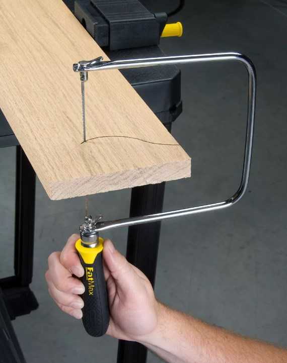 - при простом пилении древесины по прямой нужно выбрать максимальное натяжение пилки на ручке инструмента. Но для строгания заготовки выбирайте натяжение поменьше
