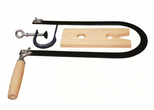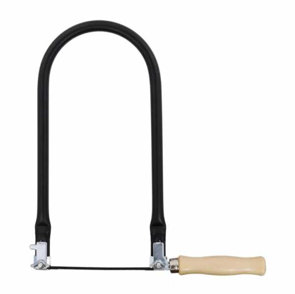 - чтобы избежать выскакивания пилки из зажимов, нужно периодически фиксировать ее с помощью поворота ручки. Однако не перестарайтесь, иначе она сломается. Если при натяжении вы чувствуете, что пилочка прочно закреплена и ручка трудно вращается, то вы сделали все правильно
