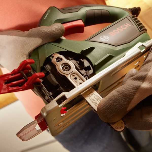- Еще одной приятной функцией, о которой уже упоминалось выше, является быстрая и простая замена одних пилок на другие. В некоторых моделях процедура замены происходит обычным нажатием на специальный рычаг, вмонтированный в корпус инструмента.