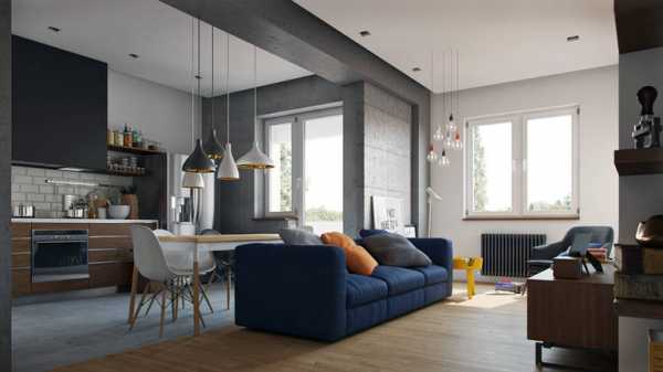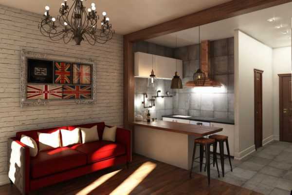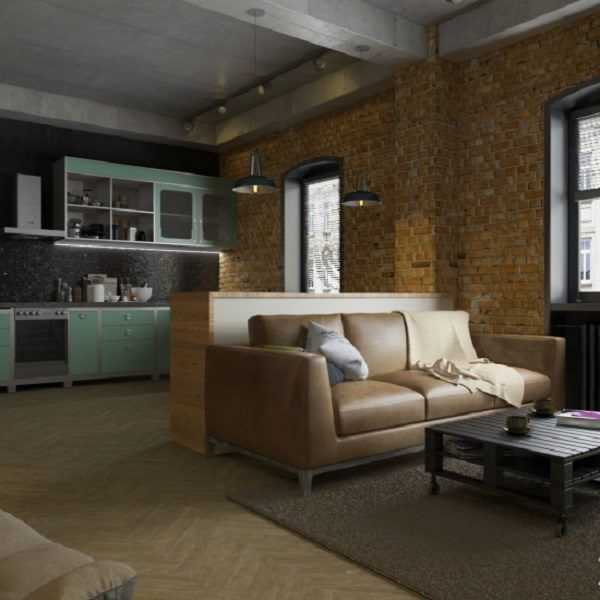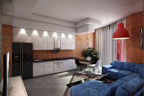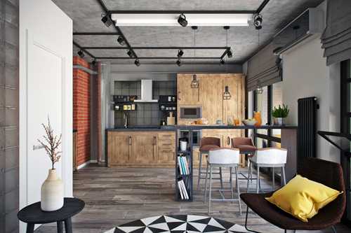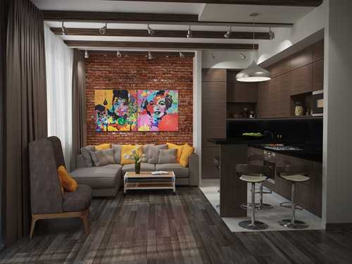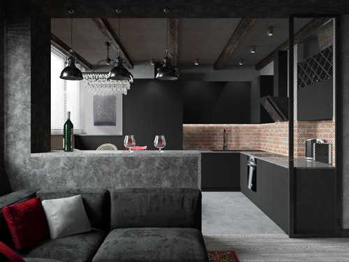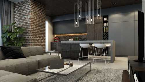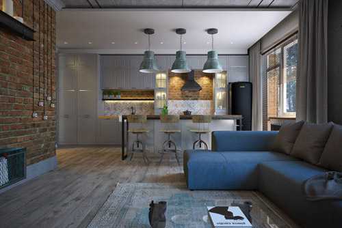 Дизайн кухни-гостиной в стиле лофт