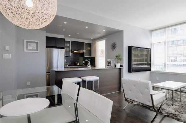 Не забывайте, что доминирующие в квартире темные оттенки визуально уменьшают пространство. Поэтому, если вам его жаль, отдайте преимущество светлым тонам. Так гостиная, совмещенная с кухней станет ощутимо просторнее.