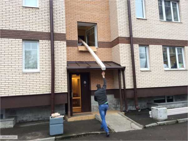 Оригинальный способ нашей бригады по занесению досок в подъезд.