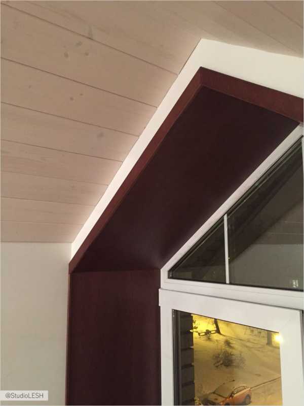 Отделка оконных проемов в кухне-гостиной из щитами массива.