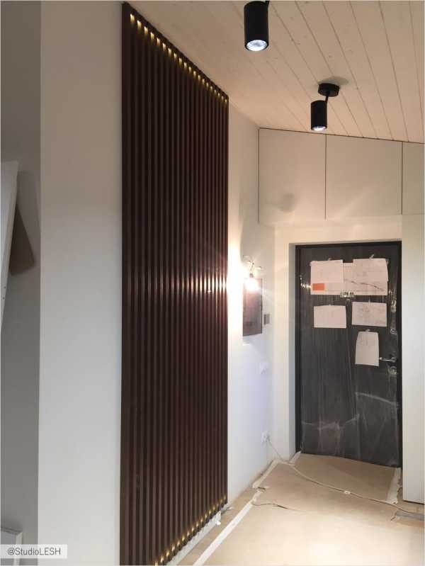 Зона прихожей после установки деревянных реек.