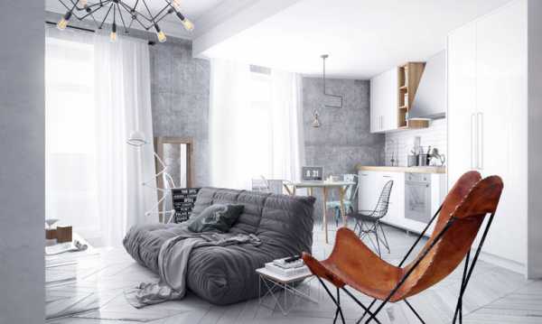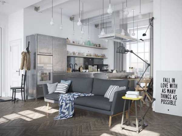 Первое, что требуется для его создания — достаточно большая площадь комнаты. Никаких внутренних стен, перегородок, максимум простора и свободы. А поскольку кухня, совмещенная с гостиной, обычно обладает достаточным метражом, считайте, этот козырь уже у вас в кармане.