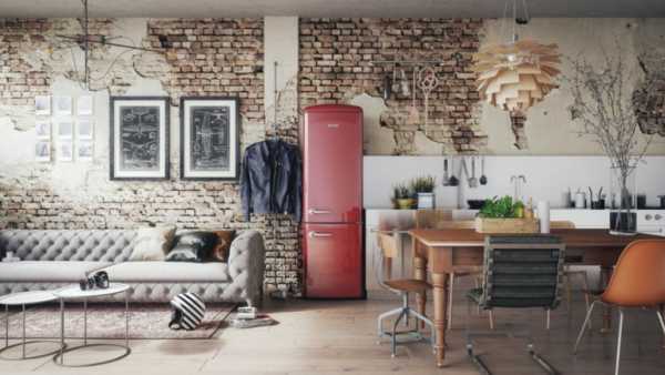 - игра контрастов: теплое кирпичное оформление стен (или отделка «под кирпич») будет уравновешено холодными оттенками белого, бетонного или металлического серого;