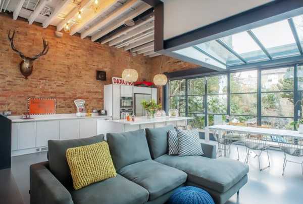 6. Большие и ничем не прикрытые окна, впускающие как можно больше солнечного света. И это логично, если вспомнить о происхождении стиля: чердачные помещения находятся довольно высоко, в них просто некому подглядывать и шторы тут не нужны. С другой стороны, всегда найдется здание повыше и пара-другая любопытных наблюдателей, да и нашему человеку с занавесками как-то спокойнее. Тут перед вами стоит выбор – позаботиться о собственном комфорте или соблюдать аутентичность стиля.