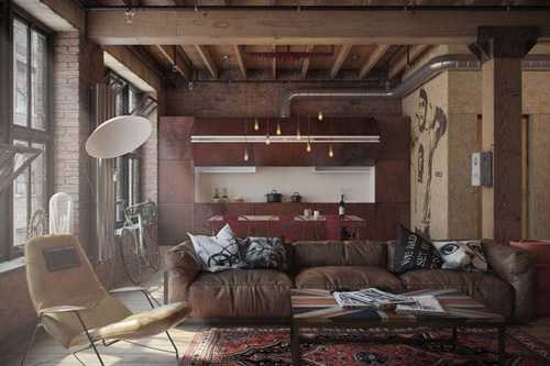 Видео — Кухня-гостиная в стиле лофт