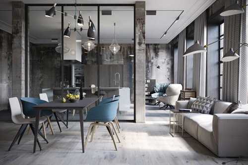 Кухня-гостиная в стиле лофт: 60 удачных интерьеров