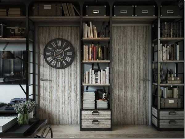Книжная полка — изюминка лофтовой гостиной