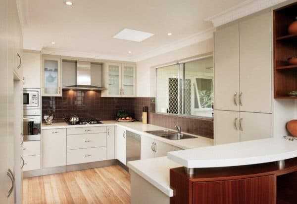 Ламинированное покрытие можно укладывать на кухне, но для этого помещения подходят только влагостойкие и водостойкие разновидности материала. Износостойкое покрытие выдержит сложные условия, попадание жидкости непосредственно на поверхность. Но выбирать модель необходимо тщательно, избегая подделок и некачественных экземпляров.
