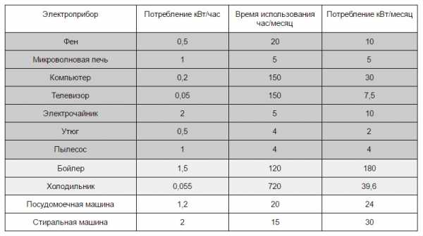 Электропотребление бытовых приборов (на примере семьи из 3-4 человек)