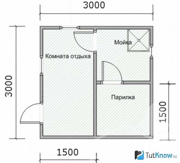 - Если вы планируете построить совсем маленькую баню (например, 3 на 3 метра), то от комнаты отдыха можно и вовсе отказаться.