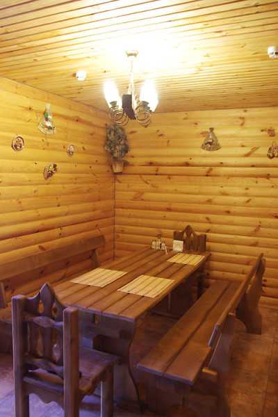- Комната отдыха — обычно самое большое помещение в бане, где располагается стол, за которым можно проводить чаепития и вести беседы с друзьями.