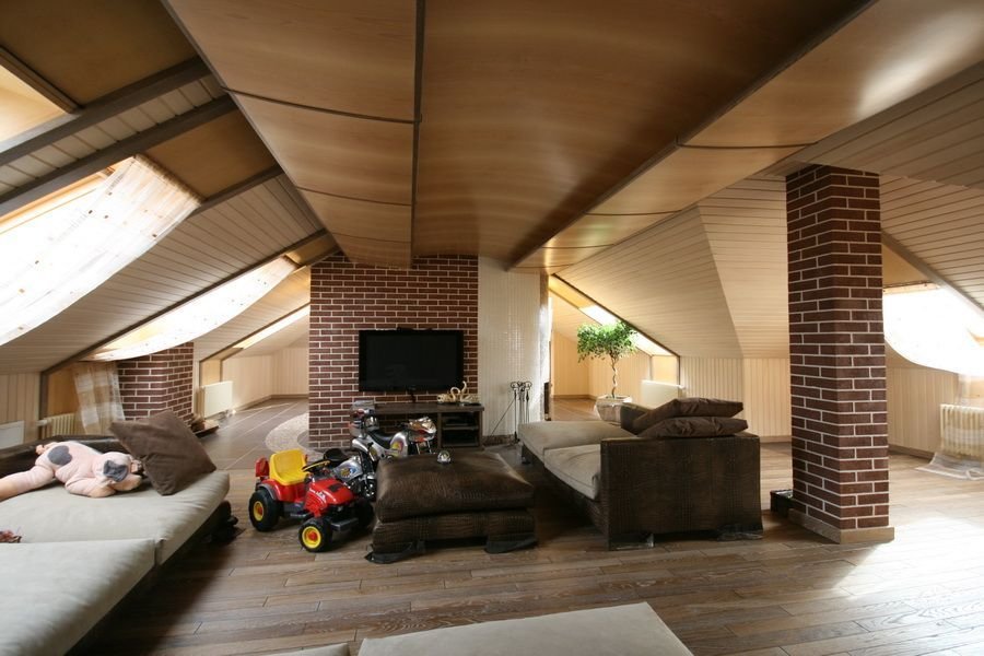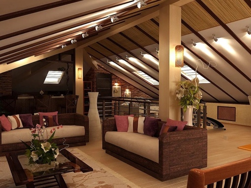 Обустройство мансарды: кабинет, спальня, игровая комната, гостиная, комната отдыха и т.д.