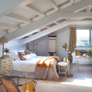 Изящно впишется в мансарду стиль прованс с его уютными оттенками и самодельными аксессуарами.