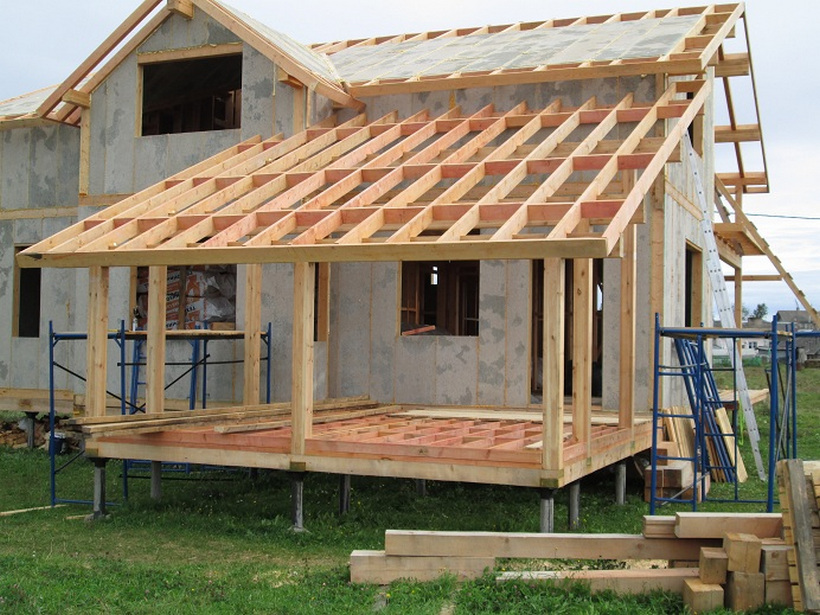 Не надо забывать, что укосы монтируются от верхнего края угла дома в сторону стены. Не надо экономить на прочности конструкции.