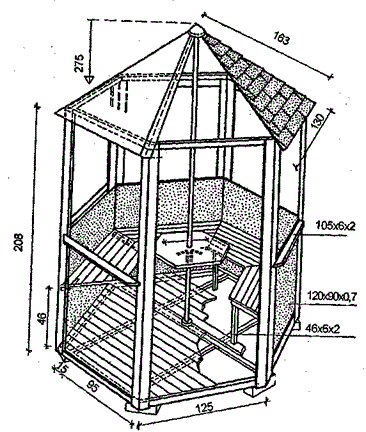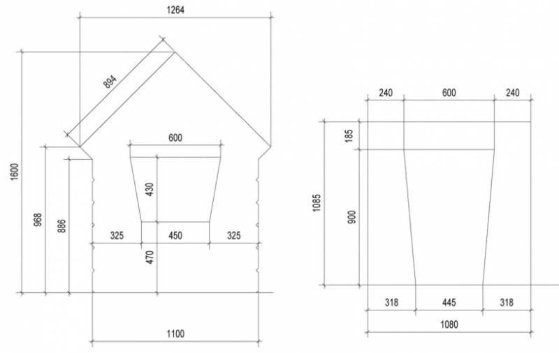 Основываясь на чертеж дачного туалета «Скворечник» строим «Шалаш», он имеет более сложную конструкции, но результат того стоит. «Шалаш» имеет много разных вариантов оформления, для этого можно использовать свою фантазию или интернет. Размеры можно использовать из предыдущего проекта.