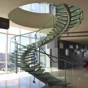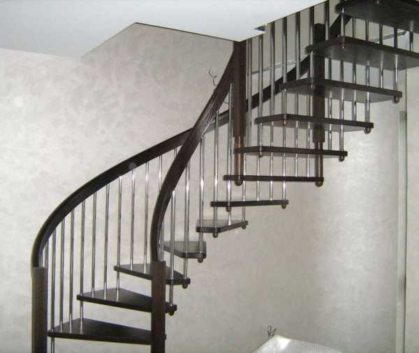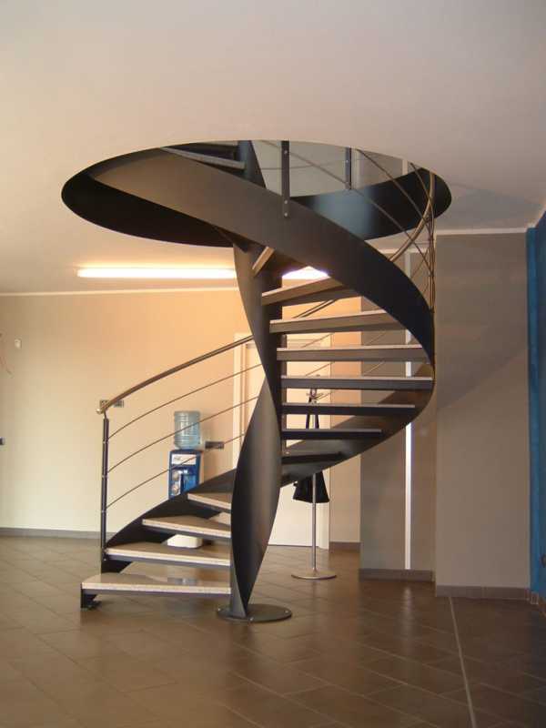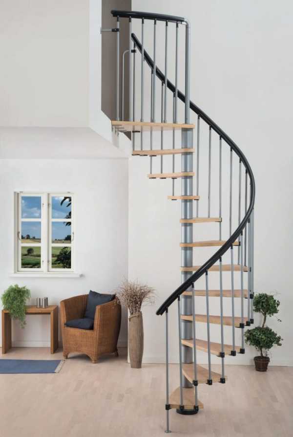 - Винтовые – встречаются намного реже, чем маршевые, возможны варианты использования винтовой лестницы как вспомогательной, не основной. Могут быть настоящим украшением помещения. Очень удобны в небольших домах, для их возведения достаточно площади 1,5 м2. Использование также допустимо как внутри помещения, так и снаружи.