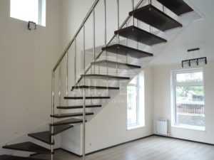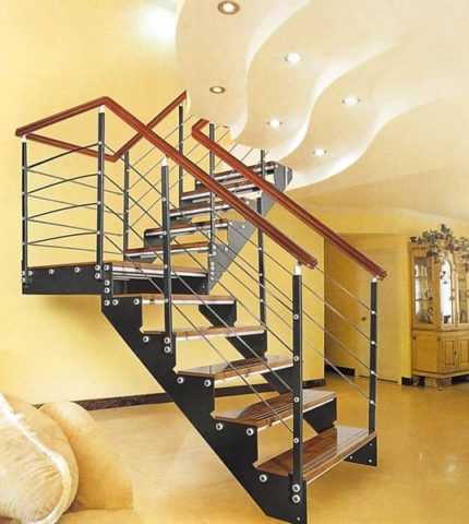 Легче работать с черновыми каркасами из швеллеров. Их отличает более доступная цена. Чтобы сооружение на металлокаркасе по кососурам было прочным и надежным, необходимо выполнить точный расчет нагрузки. Черновые варианты рассчитаны на последующую обшивку деревом или другим материалом. Их преимущество в том, что их можно устанавливать еще на стадии отделки помещения. Когда вся «грязная» работа будет завершена, на металлокаркасе устанавливают проступи и ограждения.