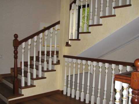 Далее можно приступать к креплению деревянных плит на косоуры и каркас ступеней своими руками. Вначале при помощи шуруповерта устанавливают проступи, затем монтируют подступенки. Для предотвращения появления сколов углы накладок рекомендуется скруглить. Когда детали ступеней установлены, остается закрепить балясины и перила. Для этой цели можно воспользоваться шпильками.