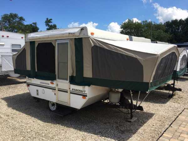 Этот тип раскладного дома на колесах. Практически все они — для летней эксплуатации, так как утепления нет. В сложенном состоянии высота прицепа чуть более метра. По количеству «комнат» и спальных мест они бывают разными. Спальные места обычно организуются в самом прицепе, а остальные помещения под тентом, который располагается на грунте. Комплектуется такой дом на колесах обычно небольшой газовой печкой и мойкой. Печка подключается к баллону с газом, вода в мойку подается при помощи маленького погружного насоса, который опускают в емкость с водой. Есть три разновидности: