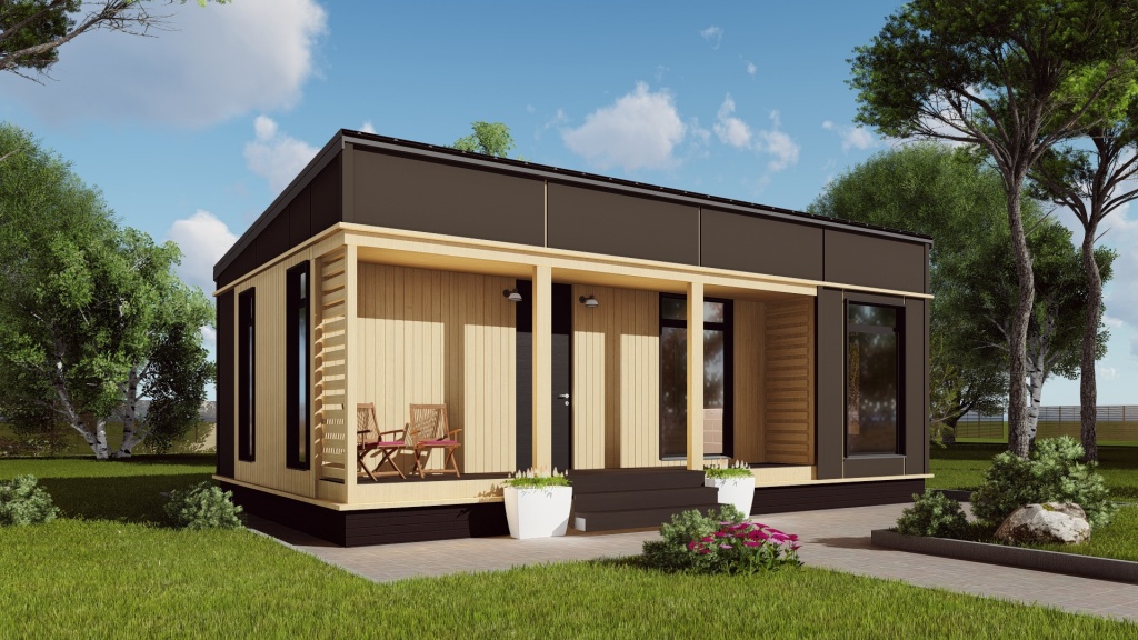 | Компактный загородный дом для одного-двух человек или небольшой семьи. В типовой планировке предусмотрены кухня-гостиная, спальня и санузел. Возможно как сезонное, так и круглогодичное использование. Дополнительные опции открывают широкие возможности по использованию дома. Терраса на четверть расширяет размеры помещения и в тёплое время года её можно использовать как гостиную, столовую или кабинет на открытом воздухе. Мини дом – новый тренд домовладения, он занимает небольшую площадь, требует мало энергии для отопления и, конечно же, экономит время на уборке такого небольшого помещения. |