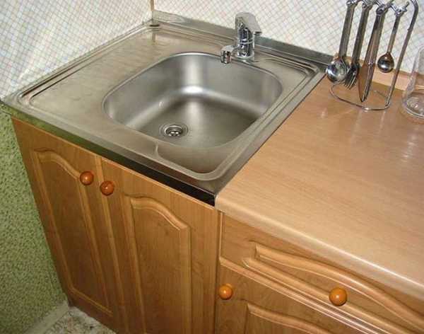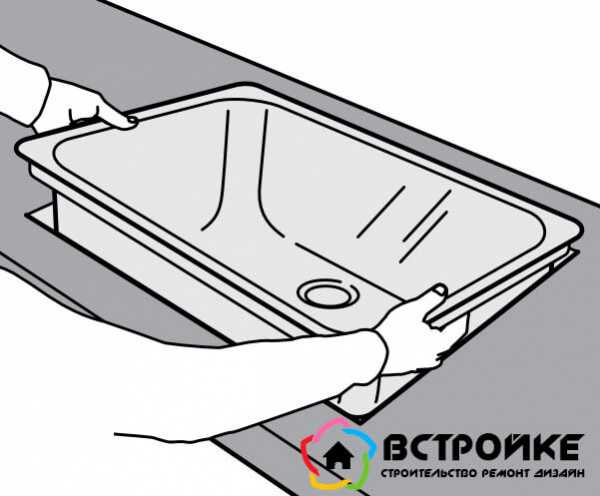 - врезные мойки – самый простой и универсальный вариант. В этом случае мойка держится за столешницу при помощи бортиков. Отверстие под чашу можно вырезать, не производя ювелирных расчетов. Важно только очень хорошо обработать герметиком место стыка бортиков мойки и столешницы. В противном случае вода потихоньку будет портить столешницу. Выполнить установку данным способом несложно, особых требований к материалу исполнения столешницы нет, но приготовьтесь, что на бортике неизбежно будет оставаться вода, которая оттуда может попадать и на столешницу, так что не забывайте ее вовремя вытирать;
