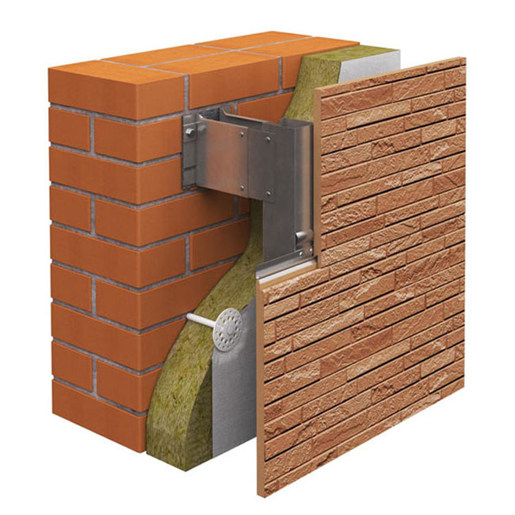 Типовой шаг по горизонтали составляет 600мм, по вертикали -1000 мм. Кронштейны крепятся к стене при помощи различных анкеров, имеющих техническое свидетельство. Типоразмер анкеров определяется по результатам контрольных испытаний несущей способности анкерных дюбелей (анкеров) в зависимости от материала несущей стены. Кронштейны различаются длиной рабочей части. Длина кронштейна зависит от толщины утепляющего слоя. Для снижения теплопотерь и коррозионных процессов, возникающих при контакте разнородных материалов, под кронштейны устанавливаются паронитовые прокладки (терморазрывы).